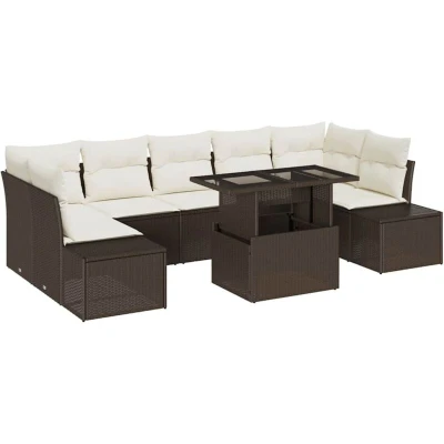 vidaXL Sofa Set with Cushion Manual 8 pcs Brown and Cream Poly Rattan