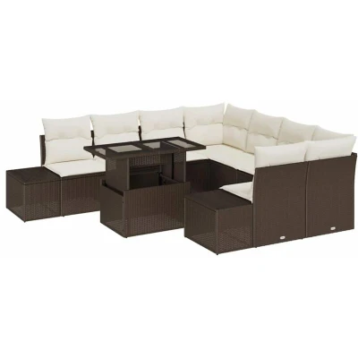 vidaXL Sofa Set with Cushion Manual 9 pcs Brown and Cream Poly Rattan