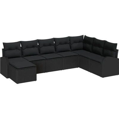 vidaXL Sofa Set with Cushion Storage 8 pcs Black Poly Rattan