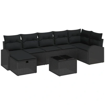 vidaXL Sofa Set with Cushion Storage 8 pcs Black Poly Rattan