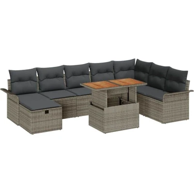 vidaXL Sofa Set with Cushion Storage 9 pcs Grey Poly Rattan