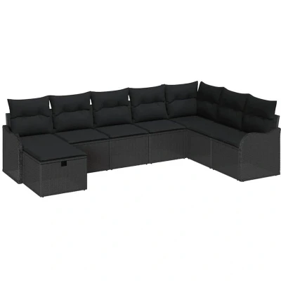 vidaXL Sofa Set with Cushion Storage Manual Black Poly Rattan