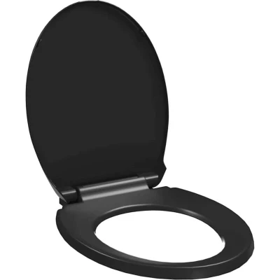 General description This quality toilet seat is suitable for all standard toilet bowls, making it an ideal choice for family homes, restaurants, department stores, and hotels. It features a soft-close function that ensures it closes slowly and quietly, enhancing user comfort. The quick-release design allows for easy installation and removal, facilitating convenient cleaning. Made of durable polypropylene, this toilet seat is built to last. Technical specifications Colour: Black Material: Polypropylene plastic Size: 42.5 x 34 cm (L x W) Distance between the centres of mounting holes: 110-170 mm Mounting hole diameter: 13-20 mm Quick-release design Soft-close function Other information