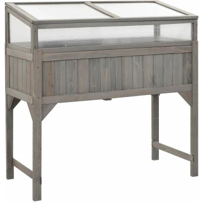 General description This raised bed with greenhouse is ideal for organizing your plants and decorating your garden or patio. Made of solid fir wood, it is weather-resistant and ensures lasting use in outdoor spaces. The greenhouse on top provides warmth and protection for plants in cold weather, allowing you to display your favorite flowers or plants beautifully. Technical specifications Colour: Grey Material: Solid fir wood Dimensions: 110 x 54 x 120 cm (L x W x H) Dimensions without transparent top: 110 x 54 x 92.5 cm (L x W x H) Inner dimensions without transparent top: 106 x 48 x 29 cm (L x W x H) Assembly required: Yes Other information