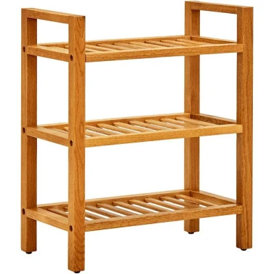 vidaXL Solid Oak Wood Shoe Rack Compact Space Saving Design, Portable with Handles, 3 Ventilated Shelves, Home Décor Storage Solution, Rustic Brown, 50x27x60 cm