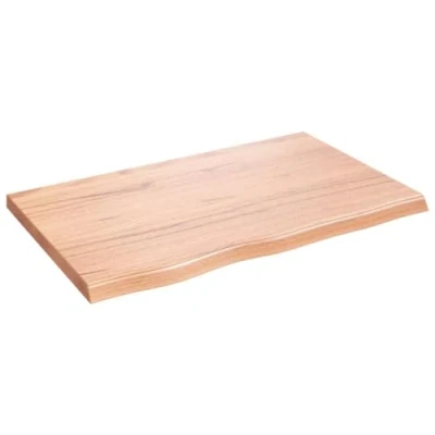 ManoManoGeneral description Give a new life to your table with this wooden table top. It is an excellent solution for freshening up your table at home or in a commercial setting. Technical specifications Material: Solid oak wood with a varnish finish Colour: Light brown Overall dimensions: 80 x 50 x (2-4) cm (L x W x T) Max. load capacity: 32 kg Features: 1 long side live edge Other information As a natural product, wood may show knots and imperfections that are filled with black fillings to ensure a smooth appearance. Handmade with live edge, showcasing a unique character for each piece.