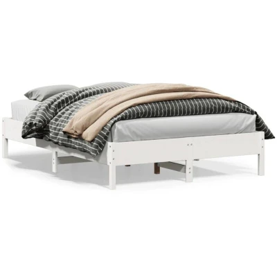 vidaXL Solid Pine Wood Bed Frame White Double Base 160x200 cm with Supportive Plywood Slats and Modern Design for Bedroom Furniture