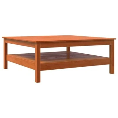 General description Add a touch of elegance to your home with this stylish wooden coffee table. Made from solid pine wood, it features a beautiful natural grain and rustic knots that enhance its charm. The stable wooden frame ensures sturdiness and stability, while the sturdy tabletop is perfect for placing drinks, food, and decorative items. Additionally, the coffee table includes a shelf for extra storage, allowing you to keep magazines, books, remote controls, and more organized. Technical specifications Material: Solid pine wood Colour: Wax brown Dimensions: 100 x 100 x 40 cm (L x W x H) Features a shelf Assembly required: Yes Other information