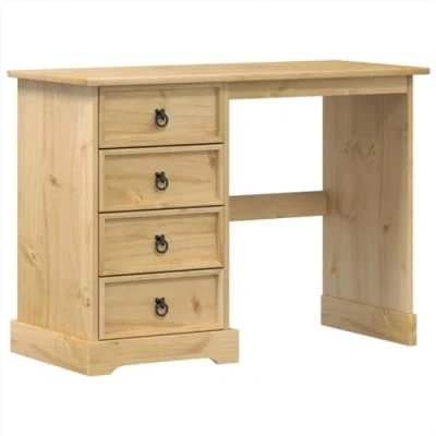 vidaXL Solid Pine Wood Dressing Table Corona 104x47x75cm Vanity/Desk with Metal Handles & Honey Wax Finish, 4 Storage Drawers for Bedroom/Office
