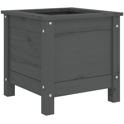 vidaXL Solid Pine Wood Garden Planter in Grey Rustic Outdoor Flower Pot for Deck, Patio, Garden, Backyard or Balcony