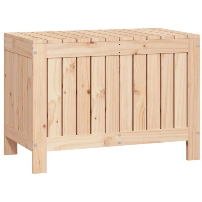 ManoManoGeneral description The wooden garden storage box is an ideal solution for keeping your outdoor area neat and tidy. Made from solid pine wood, it features a beautiful natural finish with a straight grain and rustic knots, ensuring durability and stability. This outdoor storage box provides ample space for organizing various household or garden items, making them easily accessible. Technical specifications Material: Solid pine wood (untreated) Dimensions: 76 x 42.5 x 54 cm (L x W x H) Assembly required: Yes Usage The lid opens easily and wide for convenient access to your items. When closed, the top of the storage box can be used to hold your phone, book, snack, or drink. Other information To maintain the beauty of your outdoor furniture, it is recommended to protect it with a waterproof cover.