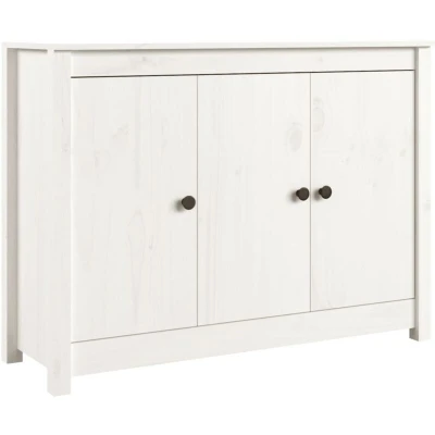 ManoManoGeneral description This practical wooden sideboard is designed to meet various requirements and serves as an ideal addition to your room. Made from solid pine wood, it features a beautiful natural material with a straight grain and rustic knots, ensuring extra stability. Technical specifications Material: Solid pine wood Colour: White Dimensions: 100 x 35 x 74 cm (W x D x H) SKU: 814560 Usage Ample storage space for organizing items and keeping them within easy reach. Sturdy top surface suitable for displaying photos, decorations, or flowers. Multifunctional cabinet that can be used in various rooms such as an office, study, living room, or bedroom. Other information Warning: To prevent overturning, this product must be used with the wall attachment device provided. Each product comes with an assembly manual in the box for easy assembly.