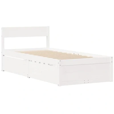 vidaXL Solid Pine Wood Single Bed Frame with Storage Drawers Modern White, Plywood Slats, 100x200 cm