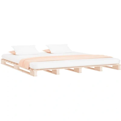 Add a modern touch to your bedroom with this classic wooden pallet bed! It makes a practical and decorative addition to your interior. It makes a practical and decorative addition to your interior. Solid pine wood: Solid pine wood is a beautiful natural material. Pine wood has a straight grain, and the knots give the material its signature, rustic look.Sturdy and stable frame: The wooden frame ensures sturdiness and stability.Practical slats: The slats of this solid wood bed frame provide good weight distribution, ensuring that the mattress stays in place with every twist and turn of your body during sleep. Note:The delivery includes a bed frame only. The mattress is not included. You can check our shop for the matching mattresses.This bed frame is suitable for a mattress measuring 135 x 190 cm (4FT6 Double).Each product comes with an assembly manual in the box for easy assembly.