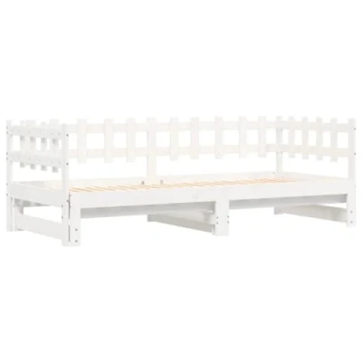 vidaXL Solid Pinewood Pull out Day Bed, Versatile Sofa cum Bed with Slatted Design, White For Bedroom and Living Room