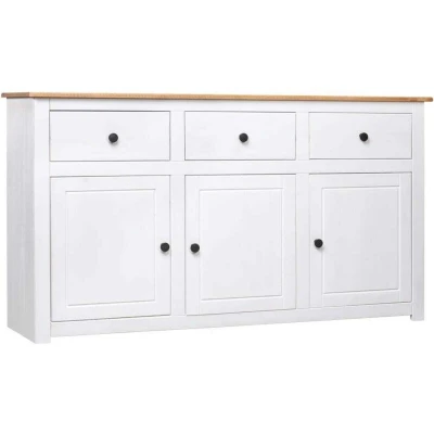 vidaXL Solid Pinewood Sideboard White Panama Range Scandinavian Styled Drawer Cabinet with Large Storage Space for Living room, Bedroom or Office