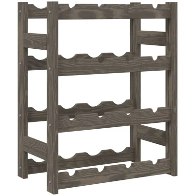 vidaXL Solid Pinewood Wine Rack for 16 Bottles Freestanding Design with 4 Tiers Storage in Grey Kitchen, Dining Room and Cellar Use