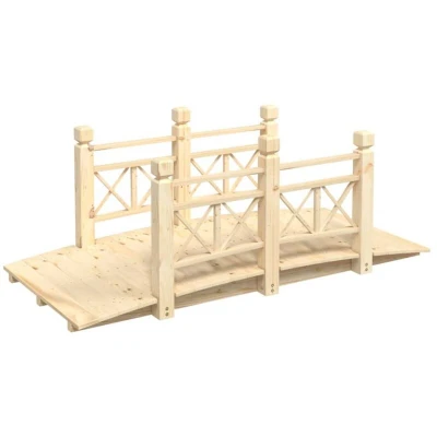 Add a touch of romantic charm to your garden with this wooden garden bridge! It is built to be a wonderful place so that you can enjoy the scenery in your garden. Solid spruce wood: Made of solid spruce wood, the pond bridge is durable and stable.Wooden frame: The wooden frame of the garden pond bridge ensures sturdiness and stability. The additional wood boards on the bottom keep it more stable without shaking.Security assurance: The rails on each side make you feel more relaxed and safer when you cross the wooden garden bridge.Wide applications: The sophisticated appearance makes the backyard bridge very suitable for decorating creeks, gardens, farms, courtyards and other places. Note:It is recommended to treat the wood with an outdoor paint, in order to extend the lifetime of the product.
