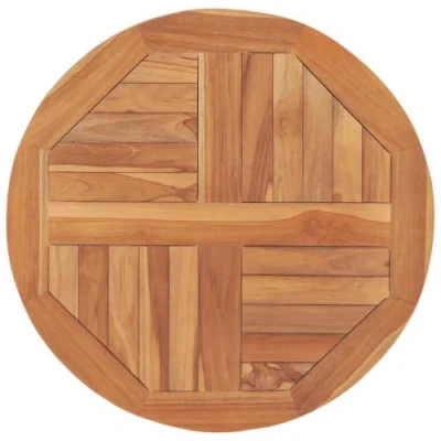 General description Give your table a new life with our solid wooden teak wood tabletop. This piece is an excellent solution for refreshing your table at home or in commercial settings such as restaurants, cafes, and hotels. Constructed from extremely durable teak hardwood, this tabletop has been seasoned, kiln-dried, and fine sanded to achieve a smooth appearance. Teak wood is renowned for its exceptional strength and weather resistance, making it an ideal choice for garden furniture. With a simple and clean look, this wooden tabletop adds rustic charm to your dining areas and is easy to clean with a damp cloth. You can combine this top with any styled table legs according to your specific needs. Technical specifications Material: Fine sanded teak hardwood with water-based finish Diameter: 60 cm Thickness: 2.5 cm Slats with 4 direction style SKU: 48984 Other information