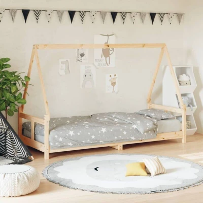 vidaXL Solid Wood Kids Bed Frame in Tipi Tent Design Natural Pine Wood, Comfy Wooden Slats, Ground level