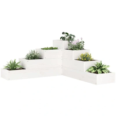 vidaXL Solid Wood Pine Corner Garden Planter 4 Tier White for Garden, Balconies, Decks, Terraces