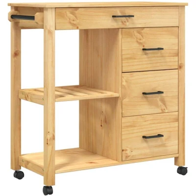 vidaXL Solid Wood Pine Kitchen Trolley MONZA Honey Wax Color Adaptable Storage with Drawers & Shelves Comes Lockable Wheels for Easy Mobility Assembly Required