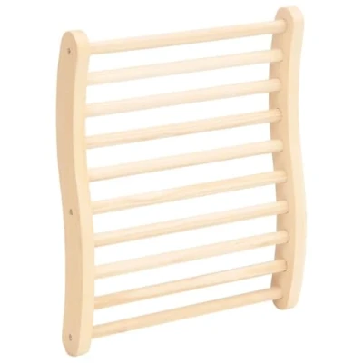 The backrest features an innovative S-shaped design with wooden rungs that naturally supports the contour of your back. This ergonomic form alleviates pressure on your muscles, ensuring that you can lean back comfortably without straining. Whether you are enjoying a traditional wooden sauna or an infrared sauna, this backrest is crafted to enhance your overall experience.