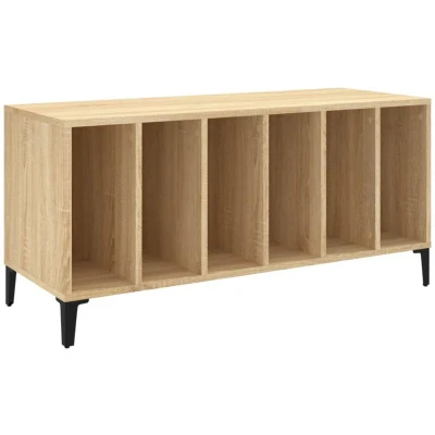 vidaXL Sonoma Oak Record Cabinet Player Stand Engineered Wood with Metal Legs, Multi use Sideboard for Vinyls, Office & Living Room Furniture