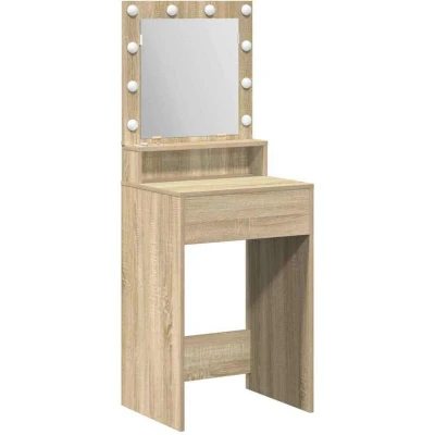 vidaXL Sonoma Oak Vanity Unit LED Lighted Dressing Table with Ample Storage and Sleek Design for Bedroom