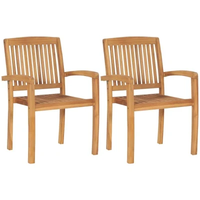 vidaXL Stacking Garden Dining Chairs 2 pcs Solid Teak Wood