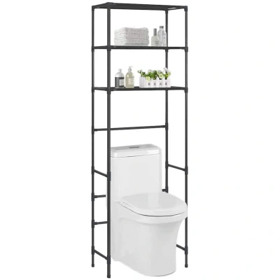 vidaXL Stainless Steel 3 Tier Storage Rack Over Toilet, Freestanding Bathroom and Laundry Organizer Shelf, Easy Assembly, Versatile use Black