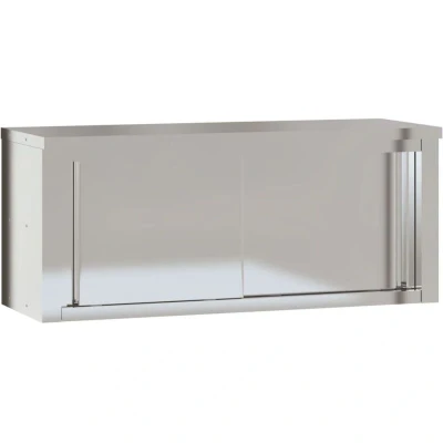 ManoManoGeneral description This kitchen wall cabinet is perfect for food storage and is ideal for a kitchen bar, restaurant, school, or other commercial settings. It features a durable and stable construction made of stainless steel, providing resistance to corrosion and rust for years of reliable use. The smooth surface is easy to clean and maintain, ensuring a hygienic food storage area. The sliding door design allows for convenient access to ingredients and supplies, while the wall-mounted design maximizes floor space and keeps the area clean. Technical specifications Colour: Silver Material: Stainless steel Dimensions: 110 x 40 x 46 cm (L x W x H) Max. loading capacity: 75 kg With 2 sliding doors Assembly required: Yes Other information
