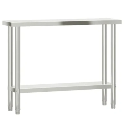 VidaXLThis kitchen work table is perfect for food prep and storage and is ideal for a kitchen bar, restaurant, school, as well as other commercial places. Durable and stable construction: The work table is made of stainless steel, providing resistance to corrosion and rust for years of reliable use. The smooth surface is easy to clean and maintain, ensuring a hygienic food preparation area.Ample workplace: The stainless steel prep table is designed with a bottom shelf for customised storage space, providing ample storage space for your microwave oven, kitchen utensils, or any other tools you may need.Adjustable feet: The adjustable feet with a non-slip design ensure the kitchen prep table remains stable and will stay put, protecting the floor from damage. Warning:To prevent it from tipping over, this product must be used with the provided wall attachment device.