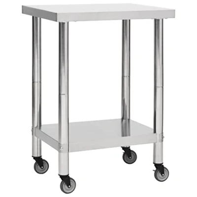 vidaXL Stainless Steel Kitchen Work Table with Moveable Wheels and Bottom Storage Board Silver, 60x30x85 cm