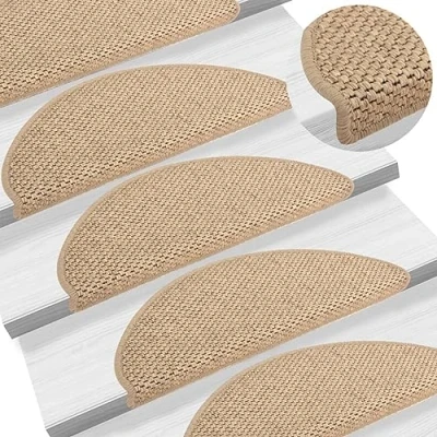 VidaXLThese stair mats will not only make a striking decorative addition to your home decor, but also protect you from slipping when going up and down stairs and keep your stairs from becoming scuffed. These mats are made of strong fabric in sisal look, so they are sound dampening, non slip, warm and comfortable. These stair rugs are also washable and are folded to protect both the top and the front of the stairs. The adhesive tapes on the back allow these mats to be attached to the stairs easily and quickly.