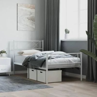 vidaXL Steel Bed Frame with Planar Slats, Headboard and Footboard White Single Bed, Extra Storage 80x200 cm for Bedroom