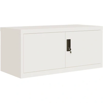 ManoManoGeneral description This file cabinet, featuring a simple yet stylish design, is an excellent choice for keeping your files and other office supplies well organized. Made of durable powder-coated steel, it offers sturdiness and stability while being easy to clean and maintain. Technical specifications Colour: White Material: Powder-coated steel Dimensions: 90 x 40 x 40 cm (W x D x H) Maximum load capacity per shelf: 30 kg Lockable doors with 2 keys Assembly required: Yes Usage Ample storage space for files and office supplies. Lockable design ensures the safety of important documents. Can be used on the top of another cabinet for additional storage options. Other information