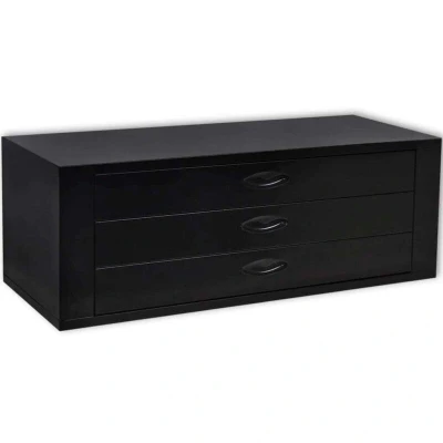 General description This Metal Tool Chest features a sleek black design that not only provides ample storage for your tools but also adds a unique decorative touch to your home with its understated industrial look. With three drawers, each capable of holding up to 15 kg, this toolbox is perfect for organizing various tools. The drawers are equipped with ball bearing runners for smooth operation, even under heavy loads. Technical specifications Colour: Black Material: Steel Dimensions: 89.5 x 36 x 32 cm (W x D x H) Maximum load capacity per drawer: 15 kg Number of drawers: 3 Compatibility and accessories Can be used with a tool cabinet to increase storage space. Other information