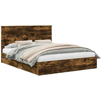 vidaXL Storage Bed with Drawer Smoked Oak 160 x 200 cm Engineered Wood
