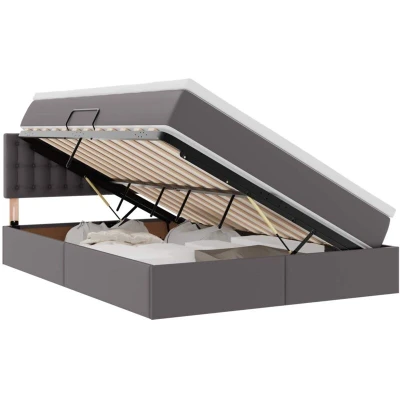 vidaXL Storage Bed with Mattress Grey 140 x 190 cm Faux Leather