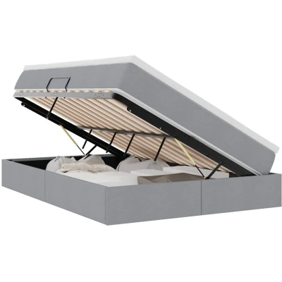 vidaXL Storage Bed with Mattress Light Grey 140 x 190 cm Polyester