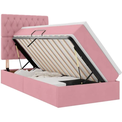 vidaXL Storage Bed with Mattress Pink 100 x 200 cm Velvet
