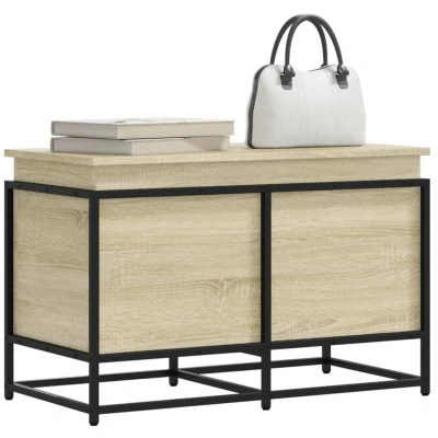ManoManoGeneral description This storage box is an ideal storage solution and makes a great decorative addition to your living space. It offers ample space to keep your clothing, blankets, toys, cushions, and other daily essentials well-organized. With a stable top, it can also serve as a coffee table, couch table, or side table, enhancing your interior with an industrial style. Technical specifications Colour: Sonoma oak Material: Engineered wood, metal Dimensions: 80 x 40 x 51.5 cm (W x D x H) Loading capacity of top shelf: 30 kg Overall loading capacity: 50 kg Shape: Rectangular Assembly required: Yes SKU: 848800 Usage Can be used for storing clothing, blankets, toys, and cushions. Serves as a stable surface for snacks, drinks, vases, and decorative items. Other information Warning: To prevent it from tipping over, this product must be used with the provided wall attachment device.