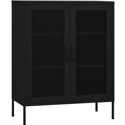 VidaXLThis storage cabinet with practical design is a real eye-catcher for your home decor. This side cabinet, featuring a steel construction, is sturdy and durable. There are levellers on the bottom to adjust the height according to your needs. The sideboard has 2 mesh doors with adjustable shelves inside to suit different sized items, such as books, magazines, and other personal essentials.