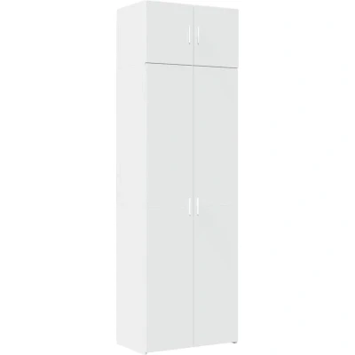 ManoManoGeneral description This storage cabinet features two cabinets of varying sizes, offering additional storage space for your home. Designed with multiple compartments, it provides ample storage for books, collectibles, decorations, or other items. This tall storage unit efficiently utilizes vertical space, making it ideal for small or limited areas. Its versatile design makes it a functional addition to various spaces, including the bathroom, living room, bedroom, kitchen, laundry room, office, study, and garage. Technical specifications Colour: White Material: Engineered Wood Overall dimensions: 70 x 42.5 x 225 cm (W x D x H) Small cabinet dimensions: 70 x 42.5 x 40 cm (W x D x H) Large cabinet dimensions: 70 x 42.5 x 185 cm (W x D x H) Number of compartments: 8 Assembly required: Yes Installation To prevent tipping, this product must be used with the provided wall attachment device. Screws and plugs for inside the wall are not included; it is advised to use screws and plugs suitable
