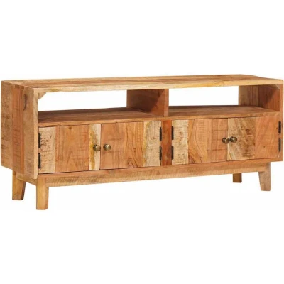 ManoManoThis Media Storage Cabinet is a beautifully crafted storage solution that blends functionality and style, ideal for any modern living room. It boasts a sleek rectangular silhouette, punctuated by clean lines and a minimalist aesthetic. In soft tones of rich brown, the cabinet presents a timeless charm while housing ample storage space for all your media essentials and more, enhancing the room's organization. Solid Mango Wood Structure Providing durability and a timeless look, this cabinet features a solid mango wood construction. Known for its strength and natural resistance to wear, this material ensures long-term reliability and an appealing, warm finish that complements the living space gracefully. Elegant Panel Doors Featuring expertly crafted panel doors, this cabinet combines aesthetic appeal with practical functionality. The doors open effortlessly to reveal generous storage space, perfect for keeping books, electronics, and personal items neatly concealed and organized.