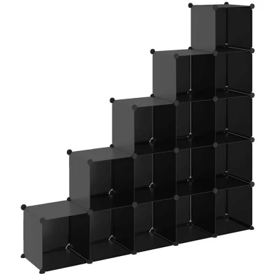 VidaXLThis versatile storage cube organiser is meant to make the best use of the limited space and satisfy your various storage needs. Practical material: The storage organiser is made of PP plastic panels, which are waterproof and need low maintenance.Strong and stable structure: The steel frames ensure sturdiness and stability.User-friendly design: Thanks to the lightweight design, the storage shelf can be assembled to your liking with the included wood hammer. When not in use, it is easy to separate the panels and stack them to save space.Ample storage space: This plastic closet contains 15 modular cubes. The storage space makes it easy to keep things organised.Wide applications: With large storage space and a simple design, the storage rack is an excellent storage solution for your home, dormitory and office. Note:The maximum loading capacity of each cube is 10 kg.