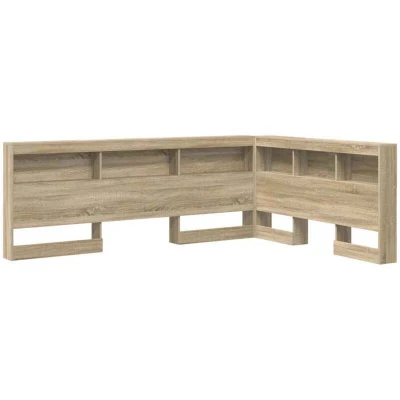 ManoManoThe Storage Headboard is a perfect blend of style and functionality tailored for the modern bedroom. Crafted carefully from engineered wood, it boasts minimalistic design and offers ample storage space to organize your essentials strategically. Its L-shaped structure adds a unique visual flair, seamlessly integrating into any contemporary bedroom setting, while providing practical solutions for those who appreciate clean lines and purposeful design. Materials: Made entirely from engineered wood, this headboard provides robust stability and a polished surface. The material's grain and texture create a warm, inviting appearance, making it an ideal companion for any bed setup, while ensuring a long-lasting and reliable structure. Included Components: The headboard is equipped with sturdy board shelves designed to accommodate books, decorative pieces, and night-time essentials. These shelves offer easy accessibility and promote an organized, clutter-free environment. Features /Function