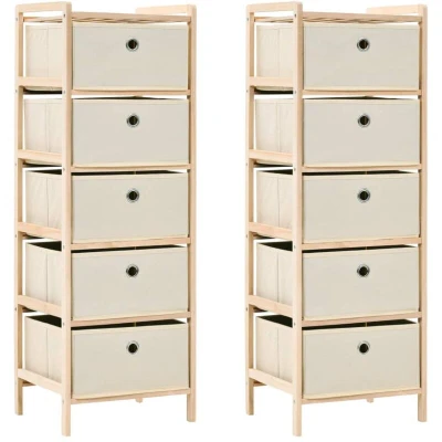 vidaXL Storage Racks with 5 Fabric Baskets 2 pcs Beige Cedar Wood