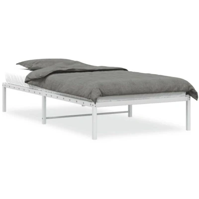 vidaXL Sturdy Metal Bed Frame Elegant White, Powder Coated Steel Single with Extra Underneath Storage Space for Bedroom